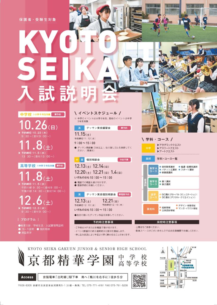 11月8日(土)に開催する「保護者・受験生対象入試説明会」の予約受付を開始しています。