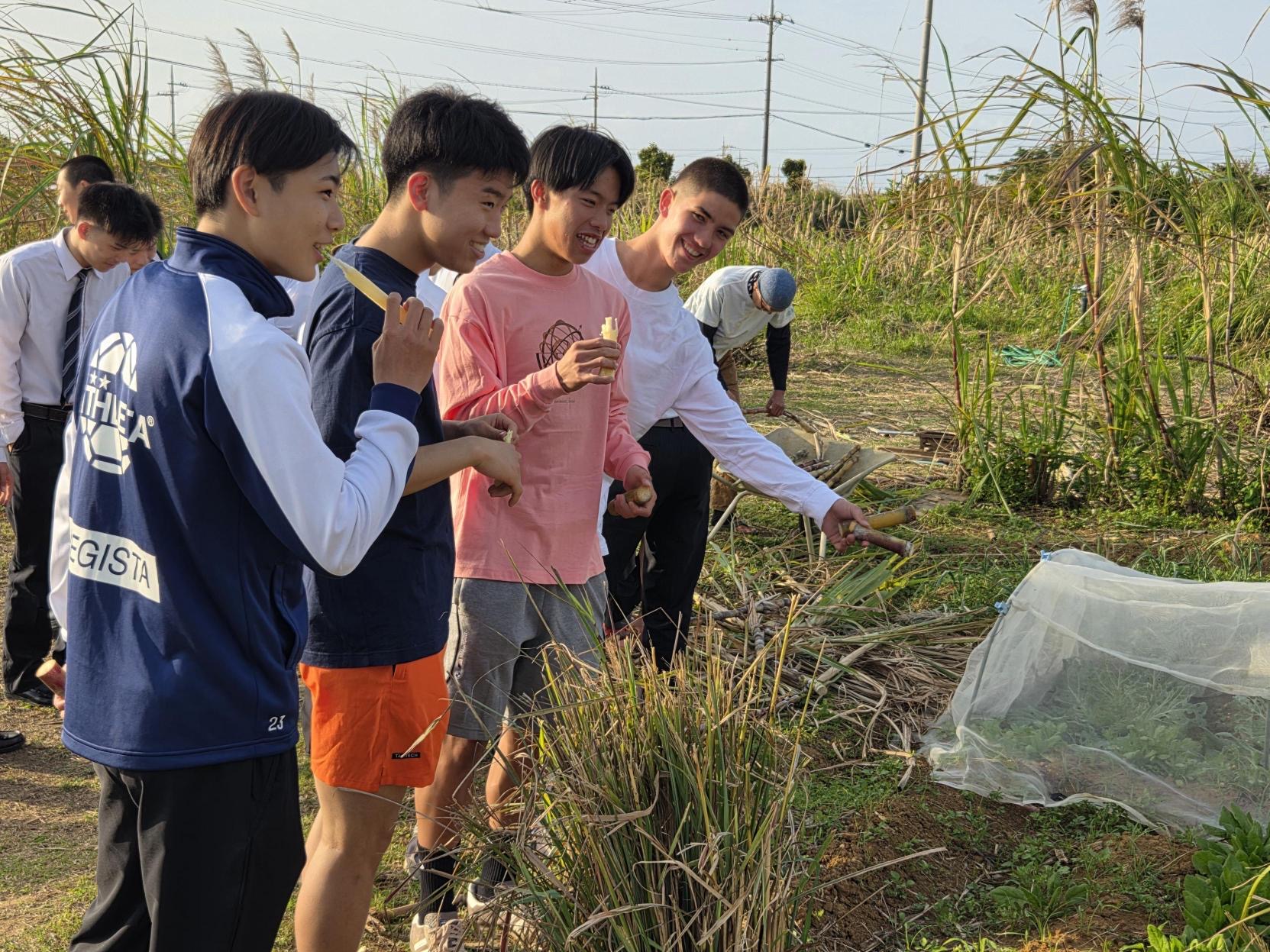 早速沖縄ならではの体験!サトウキビをがぶり!自然がいっぱいです。