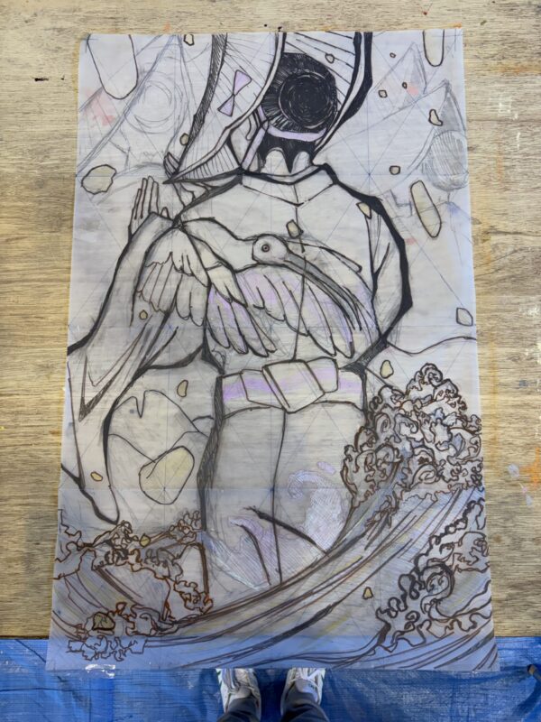 3日間で86cm✖️55cmという超巨大な木版画を仕上げねばなりません。2日目は、開会式の後、島内を取材に回りました。世界遺産の金山の他にも佐渡には色々な絶景ポイントがありテンションが上がりました。取材の後はホテルに帰り、深夜まで構図決めをして何とか下絵が完成。